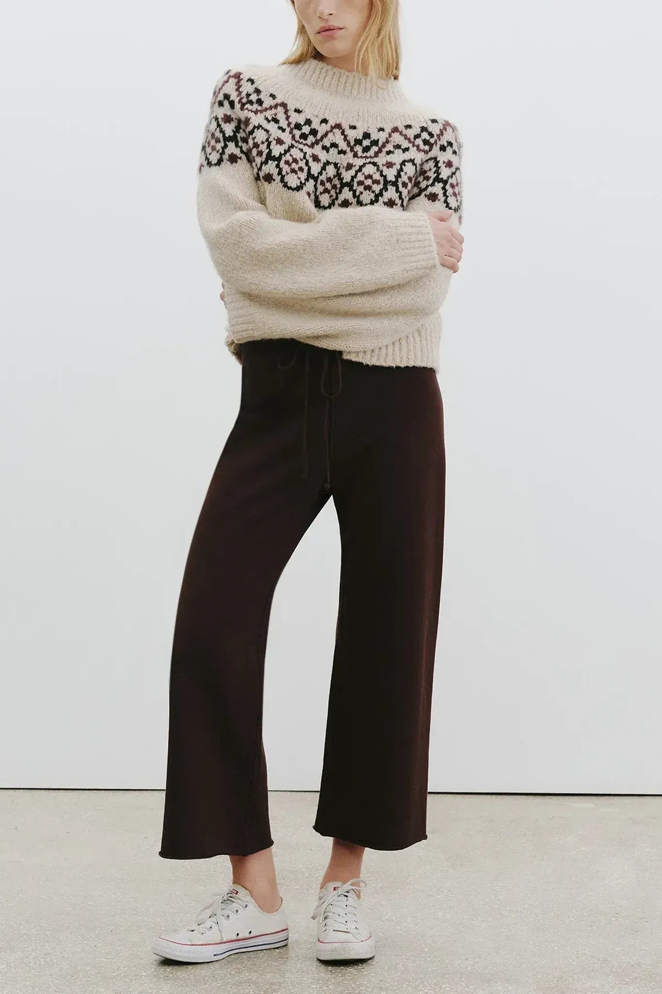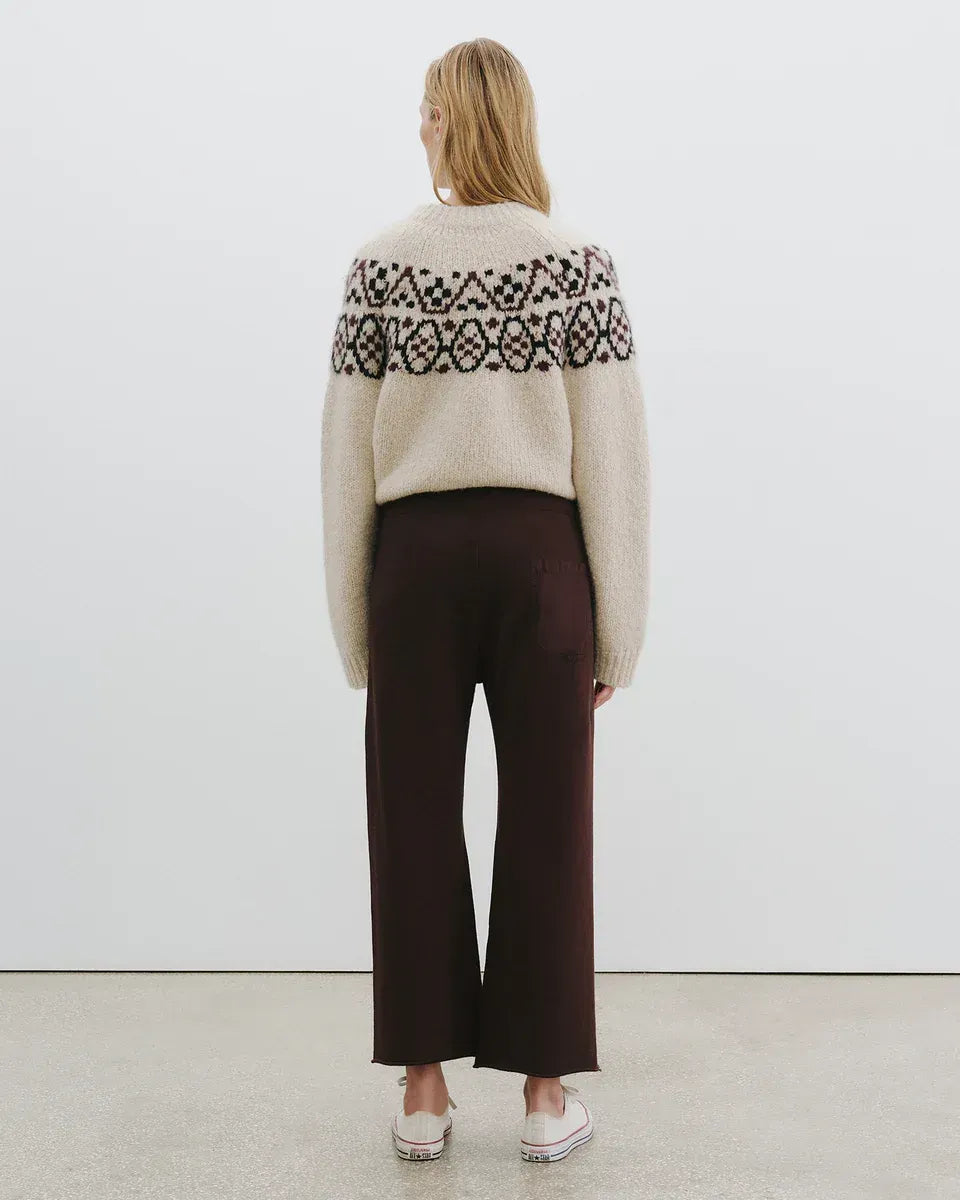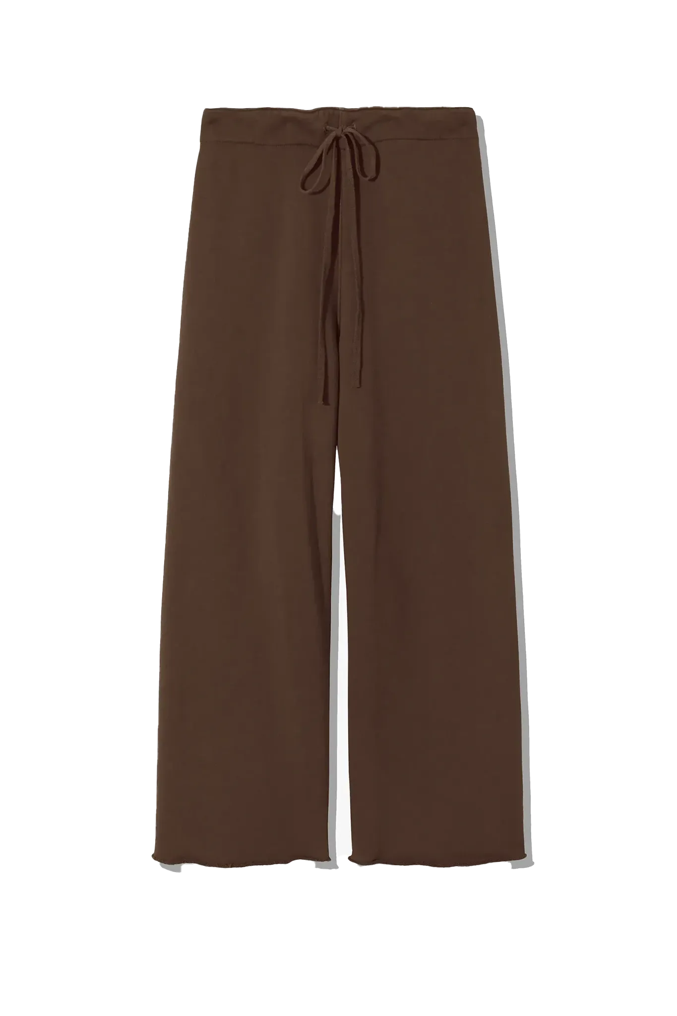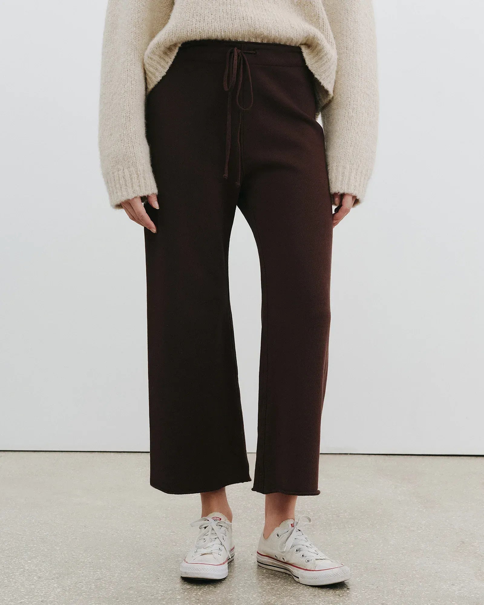 Die Kiki Hose aus klassischem French Terry in cropped Wide-Leg Silhouette mit softem Griff. Der elastische Tunnelzugbund sorgt für einen entspannten Sitz, der raw-cut Saum für einen modernen Look. Mit rückseitiger Tasche aus gewebtem Material. Angenehm leicht, made in USA.