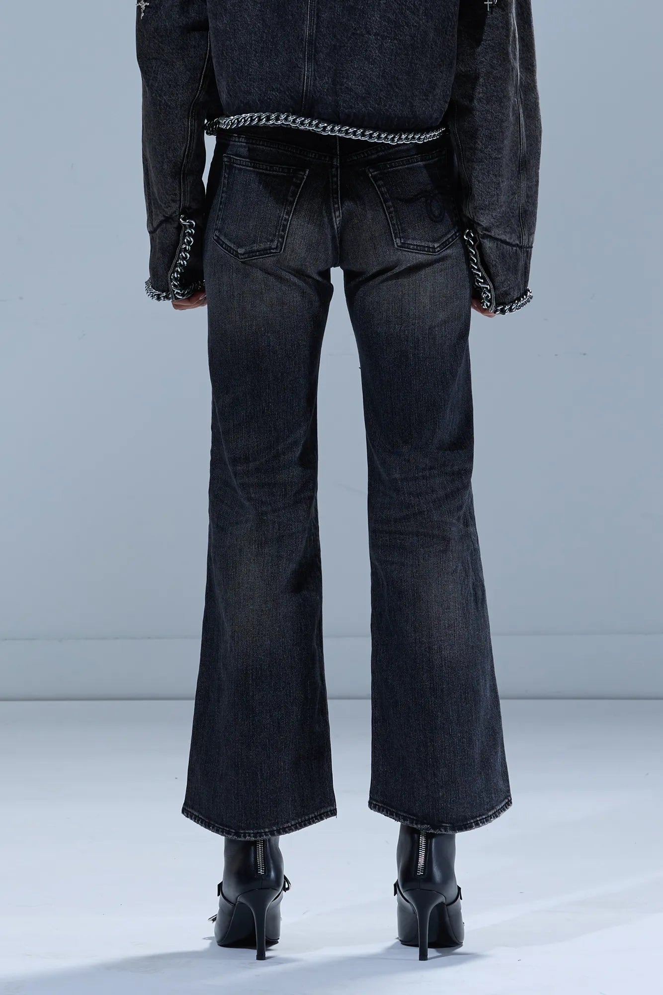 Schmal geschnittene Jeans mit verkürztem Kick-Flare-Leg. In schwarzer Waschung mit Stretchanteil für bequemen Sitz. Klassische 5-Pocket-Details.