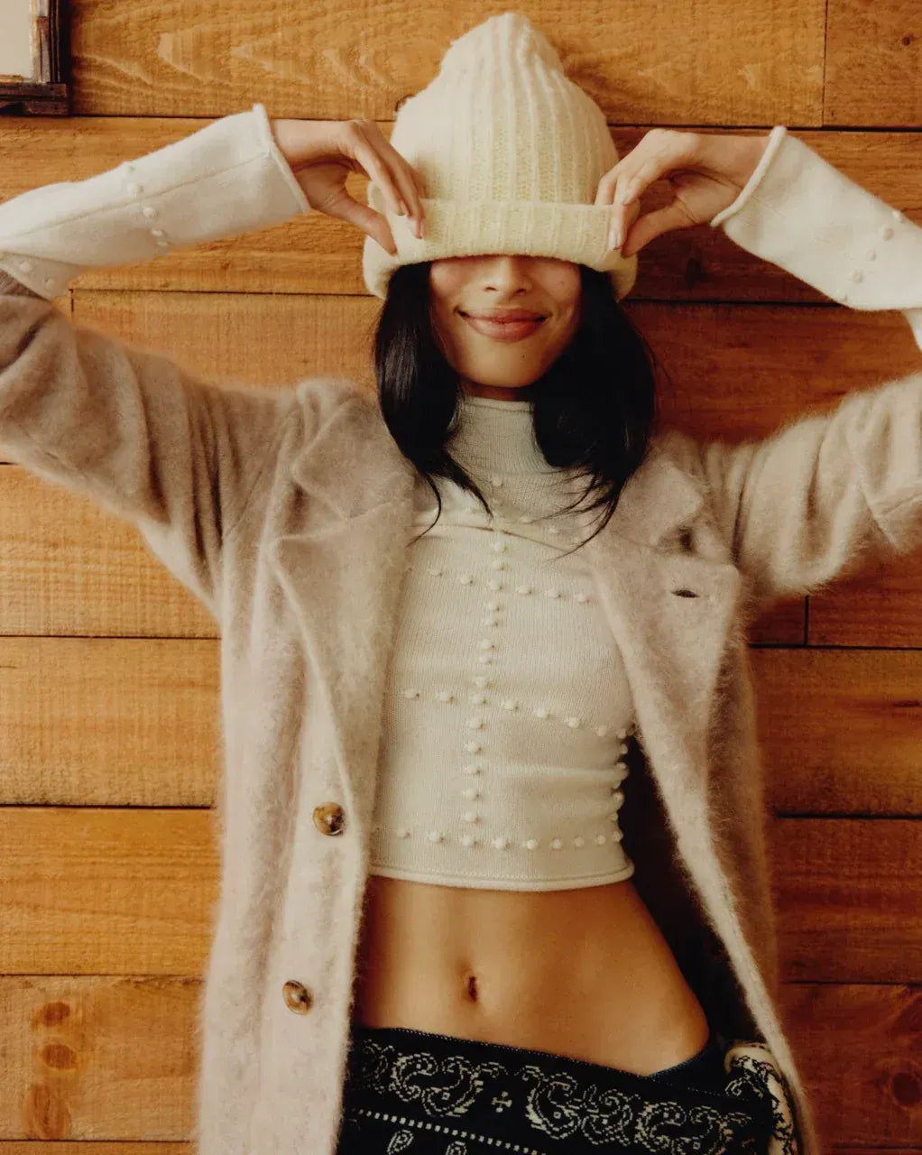 Kaschmirmantel mit gebürsteter Oberfläche, entspannter Silhouette und modernem Revers. Die weiche, warme Struktur sorgt für Komfort, der Bindegürtel formt eine moderne, klare Linie.