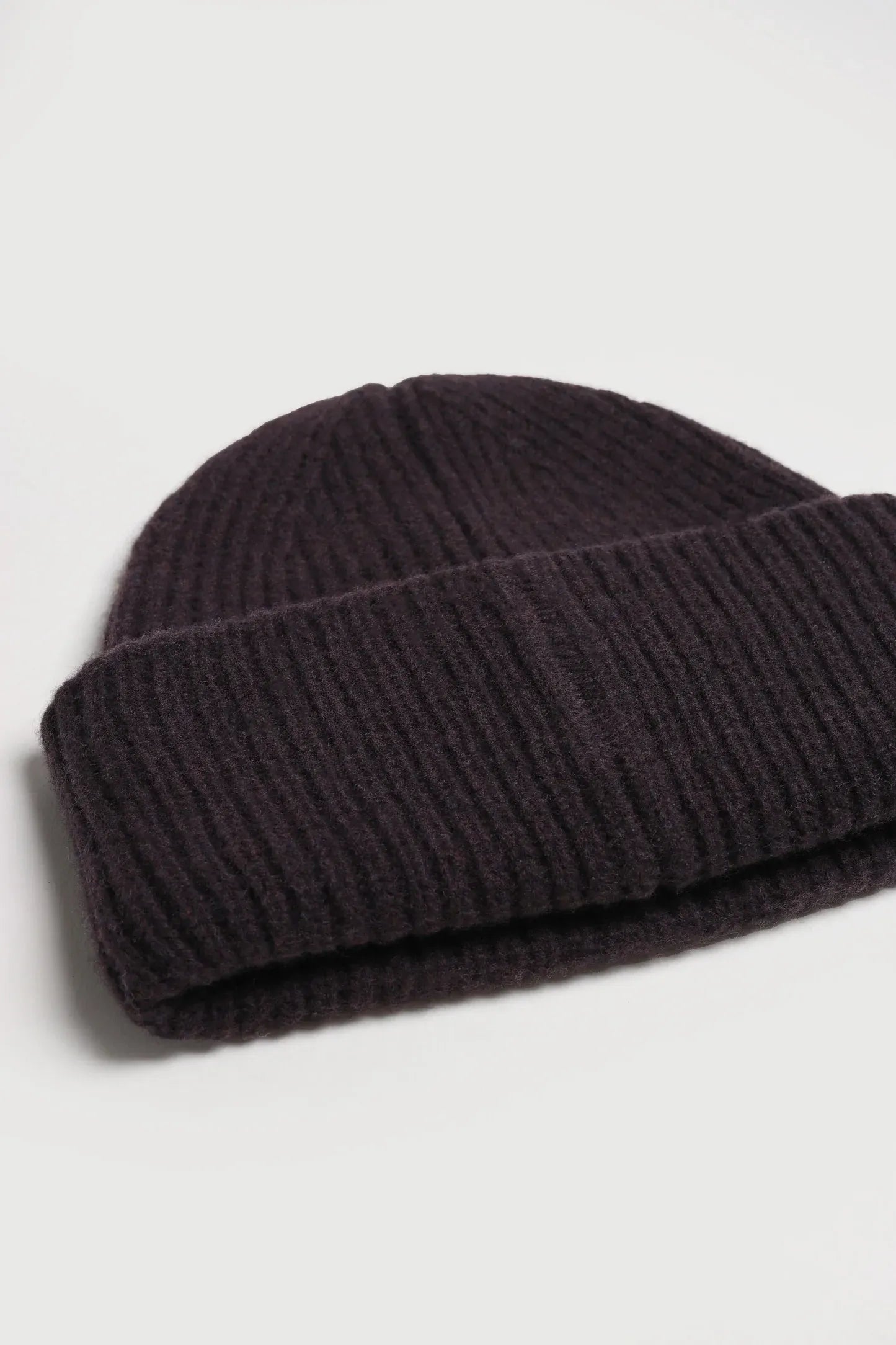 Wärmende Rippstrick-Mütze aus reiner Wolle mit breitem Umschlag. Die elastische Qualität sorgt für angenehmen Sitz und eine klare, zeitlose Silhouette.
