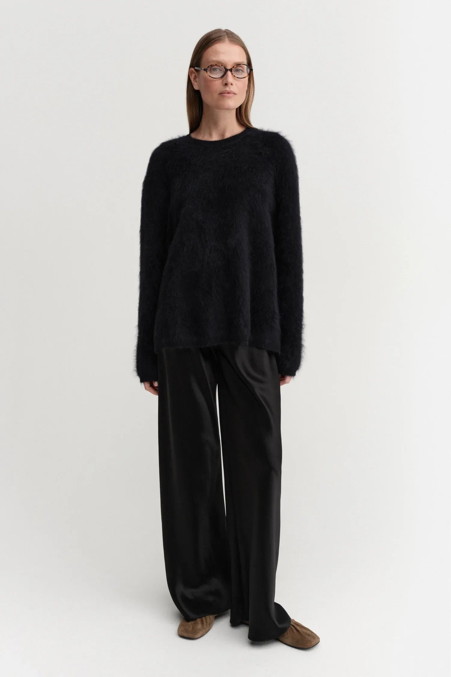 Oversized Pullover aus gebürstetem Kaschmir mit glattem, weichem Finish. Locker fallende Silhouette mit überschnittenen Schultern und Rippstrick an Halsausschnitt, Bündchen und Saum. Schweres 7 gg Gestrick, angenehm weich und nicht juckend.