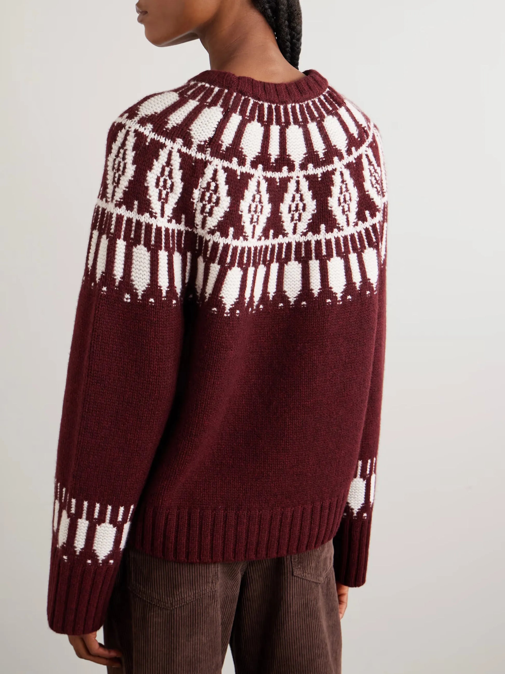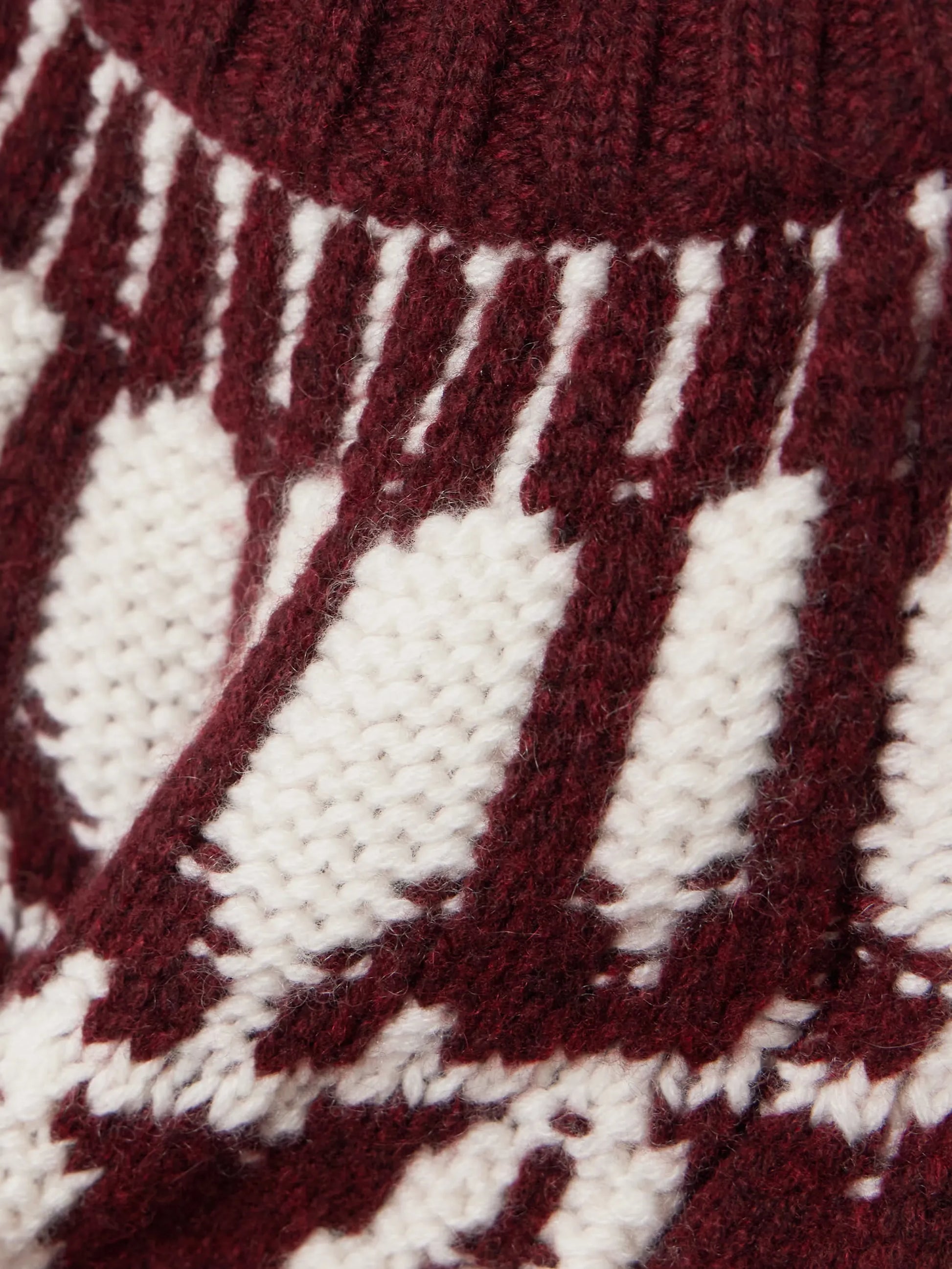 Der Jackson Pullover von Arch4 verbindet weichen Luxus mit dezenter Après-Ski-Ästhetik. Das fein gearbeitete Jacquard-Muster in Ivory und Mushroom verleiht dem 100 % GOTS-zertifizierten Bio-Kaschmir seine besondere Tiefe. Eine lockere Passform und gerippte Abschlüsse sorgen für entspannten Tragekomfort – zeitlos, warm und modern zugleich.