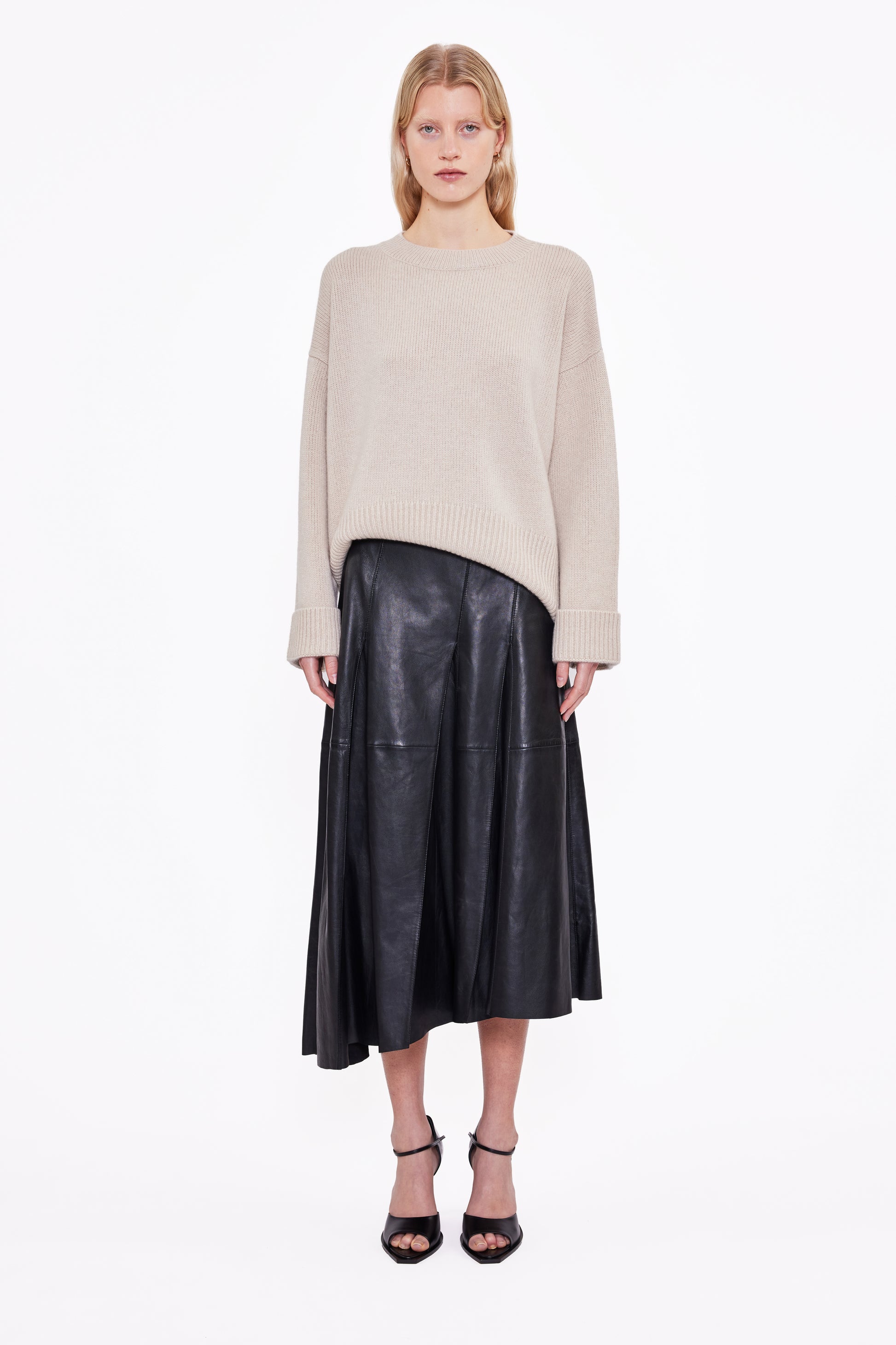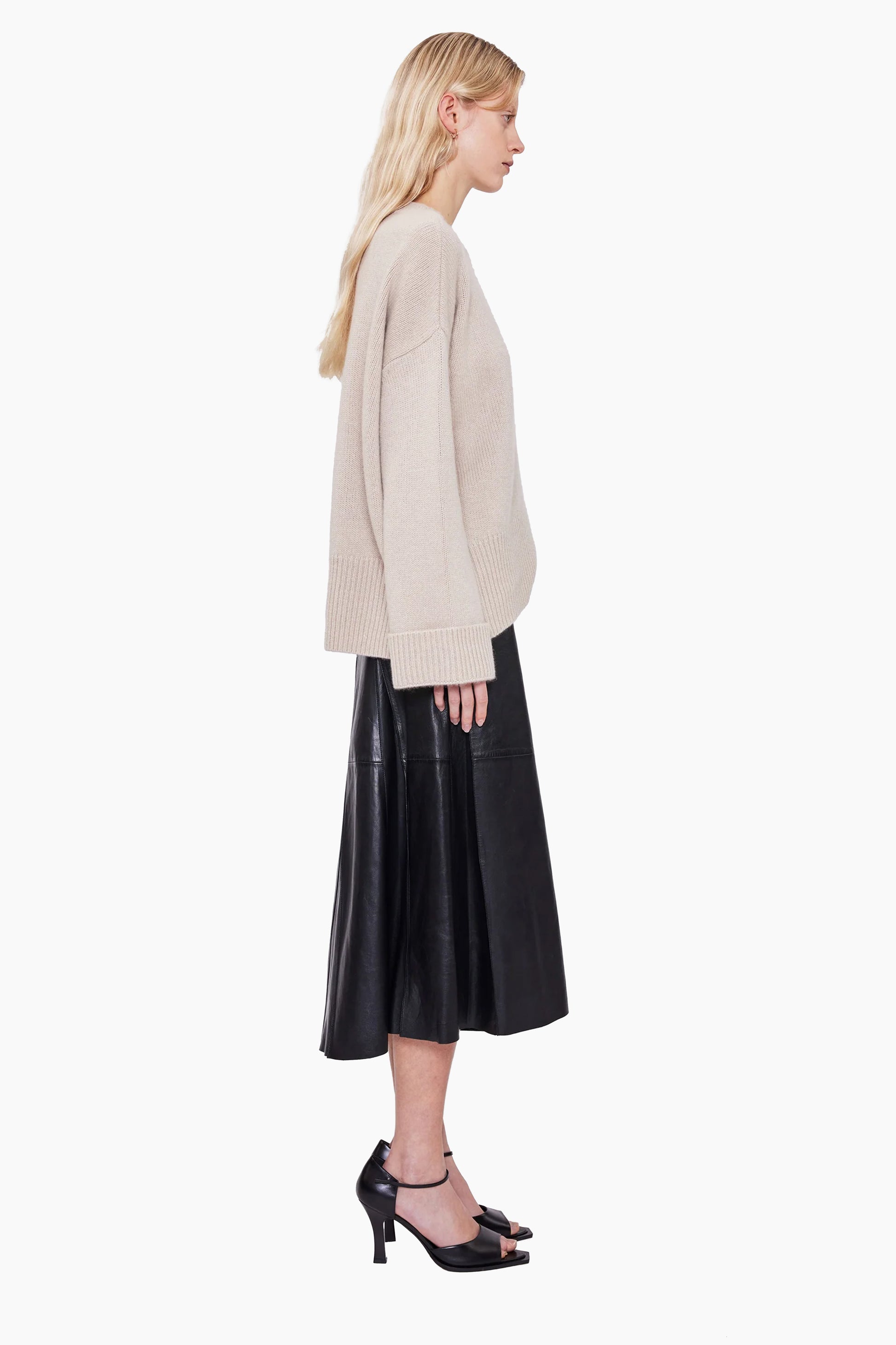 Schwerer Kaschmir in weicher Struktur. Der Knightsbridge Pullover von Arch4 ist ein Statement aus Ruhe und Wärme. Gefertigt aus 100 % GOTS-zertifiziertem Bio-Kaschmir, zeigt er eine voluminöse Stricktextur mit entspannter Oversized-Silhouette. Mit Rippstrickdetails an Ausschnitt, Ärmeln und Saum – ein schlichter, luxuriöser Knit für kühle Tage.