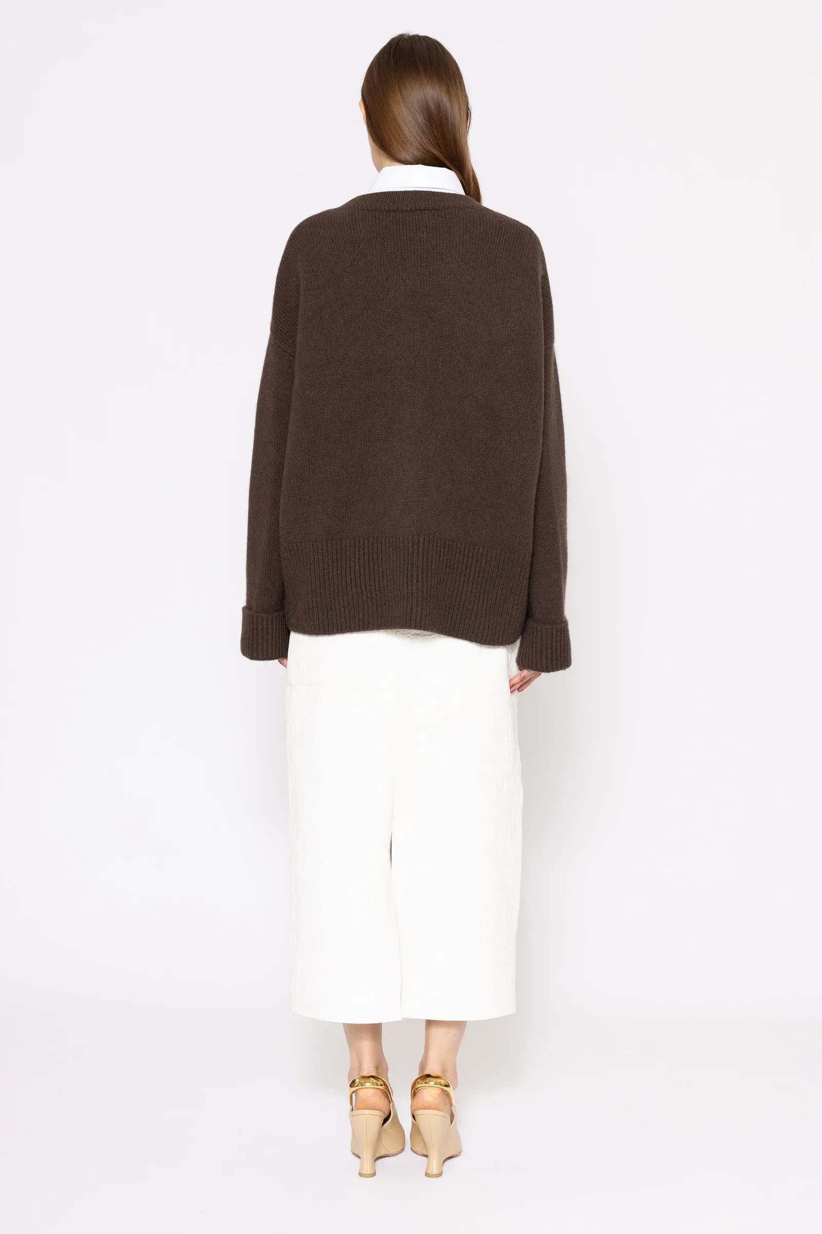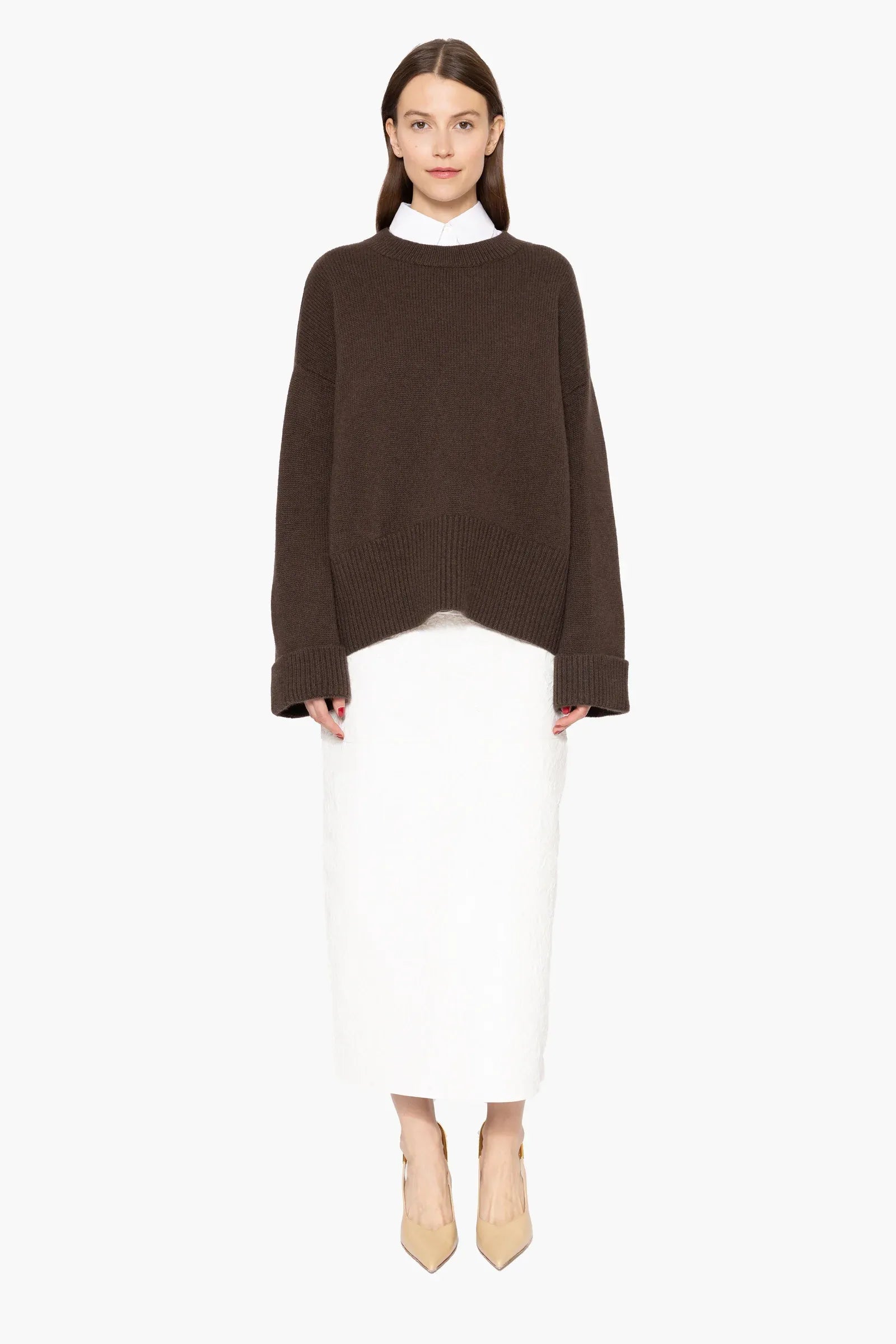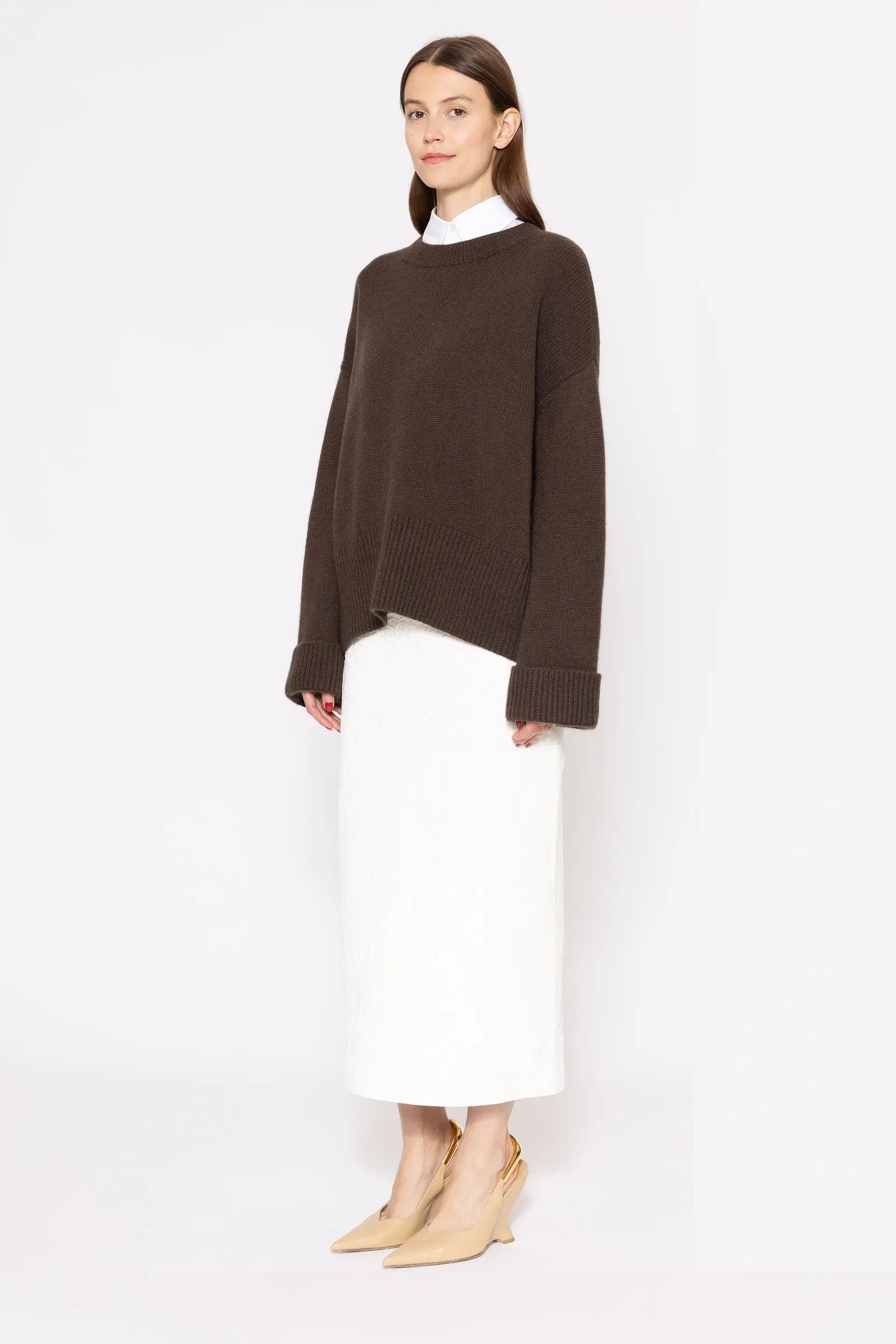 Schwerer Kaschmir in weicher Struktur. Der Knightsbridge Pullover von Arch4 ist ein Statement aus Ruhe und Wärme. Gefertigt aus 100 % GOTS-zertifiziertem Bio-Kaschmir, zeigt er eine voluminöse Stricktextur mit entspannter Oversized-Silhouette. Mit Rippstrickdetails an Ausschnitt, Ärmeln und Saum – ein schlichter, luxuriöser Knit für kühle Tage.