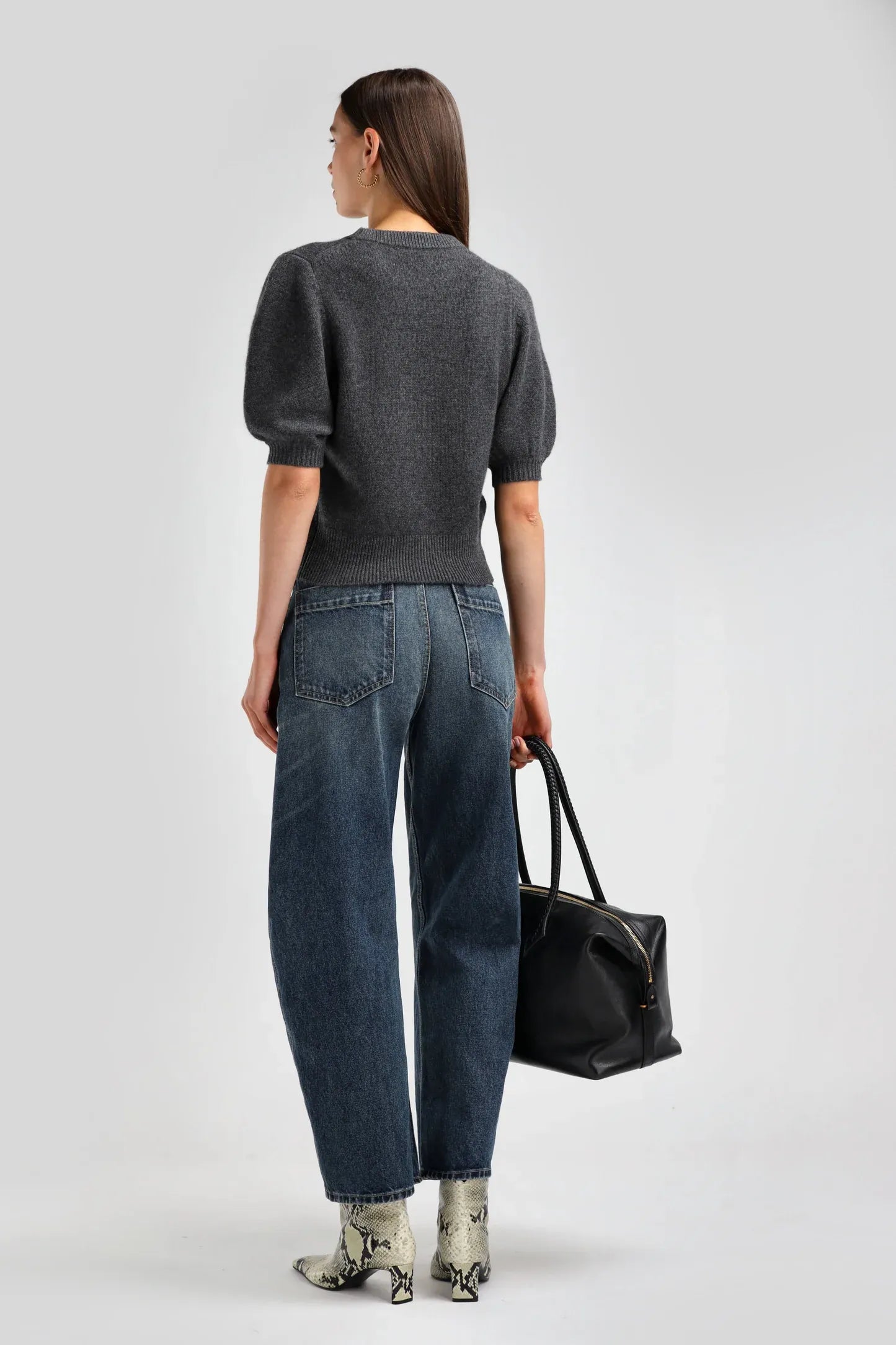 Feinstrickpullover aus 100 % Kaschmir. Mit kurzen Puffärmeln, Rundhalsausschnitt und Rippabschlüssen. Normale Passform.