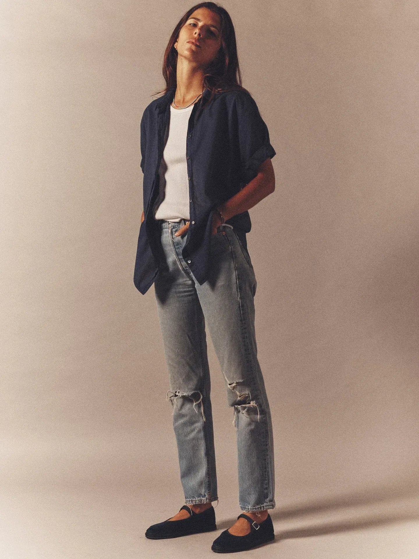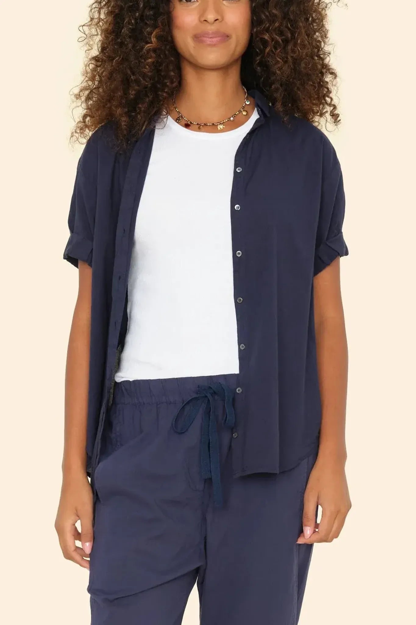 Lässig und feminin: Das „Channing Shirt“ von Xirena ist ein Sommer-Essential aus leichter Baumwolle. Die weite Silhouette, die gerollten Ärmel und der cleane Schnitt verleihen dem Klassiker einen modernen Boyish-Look – easy zu Denim, Seide oder Shorts.