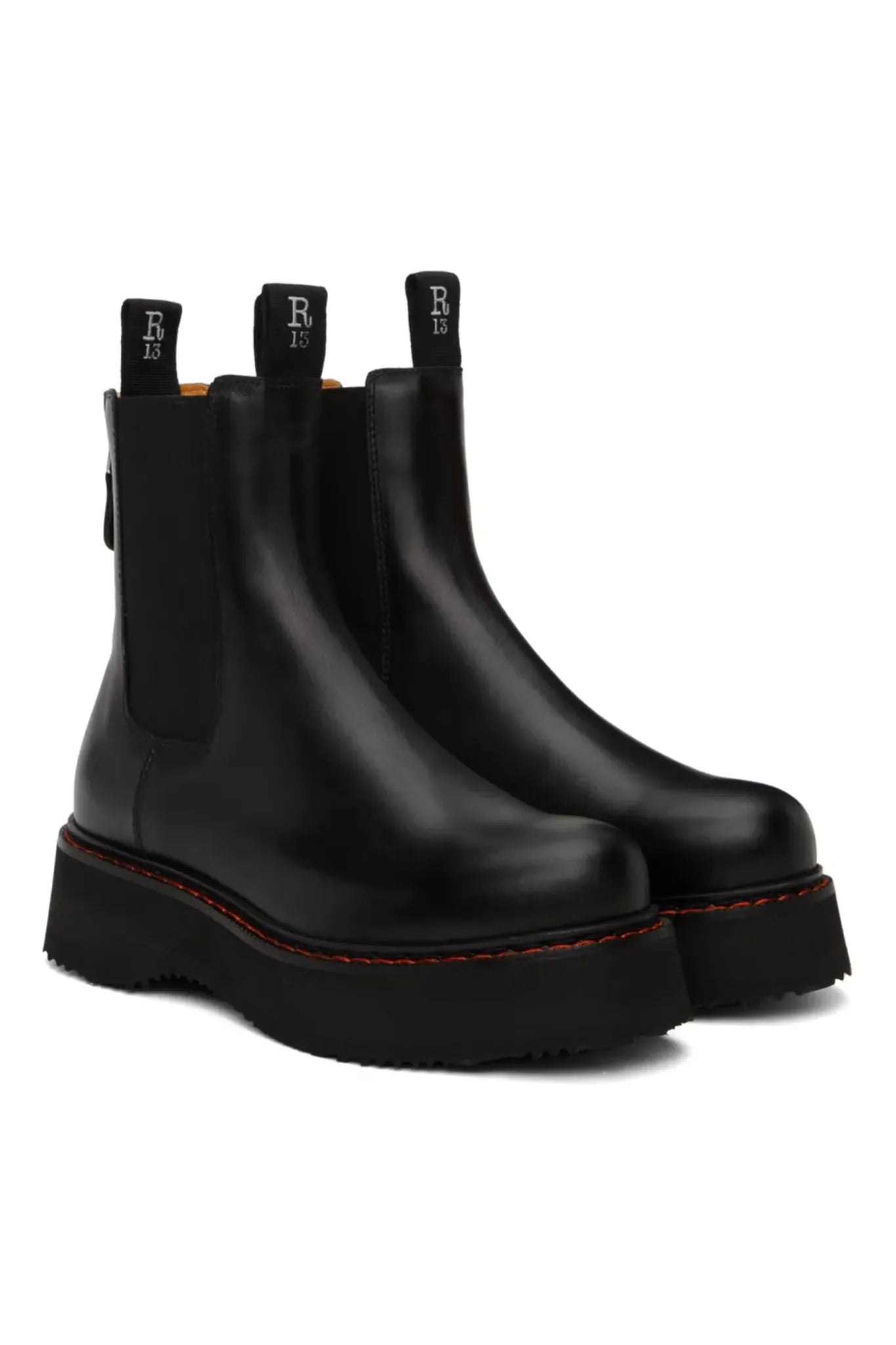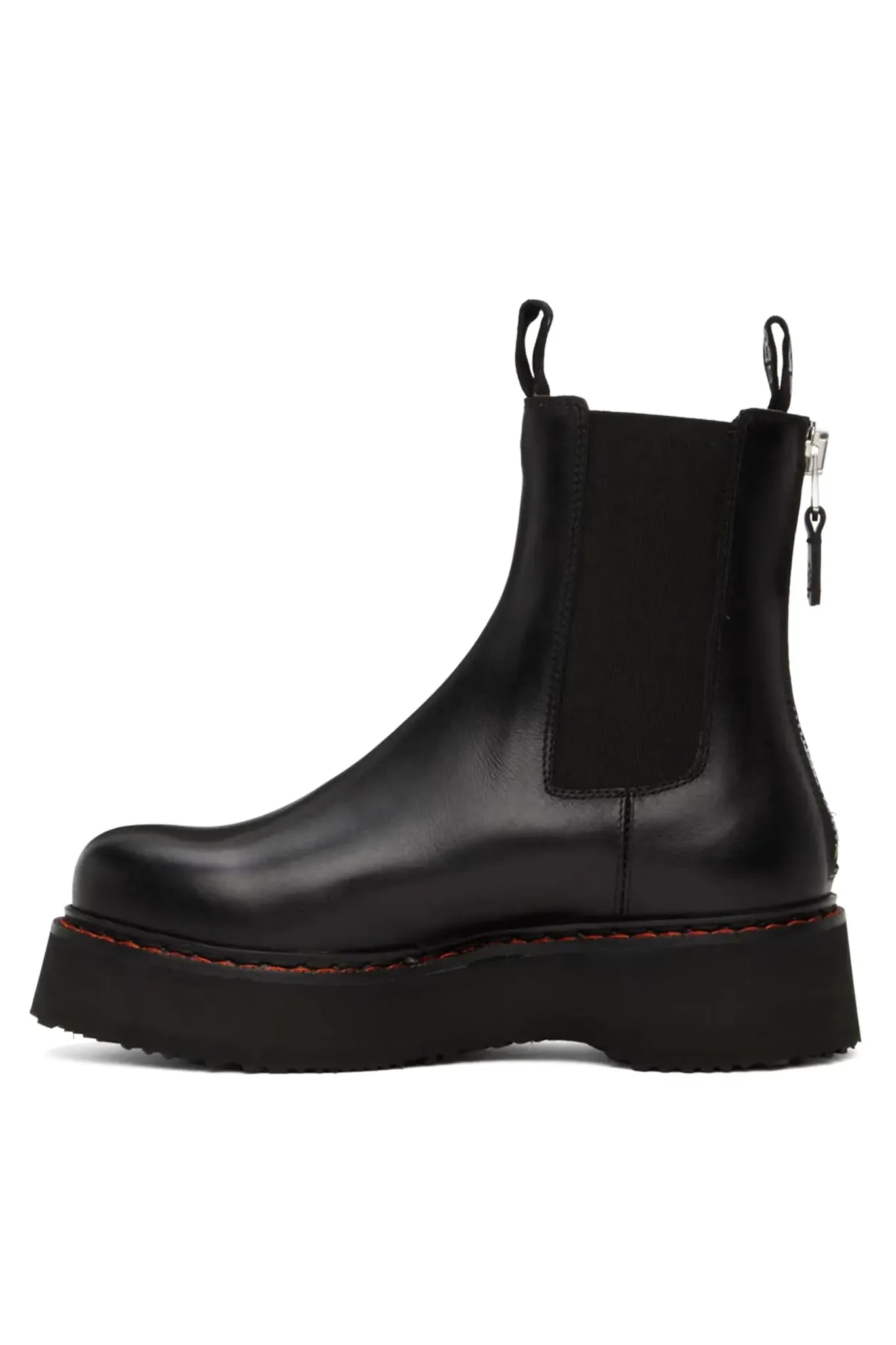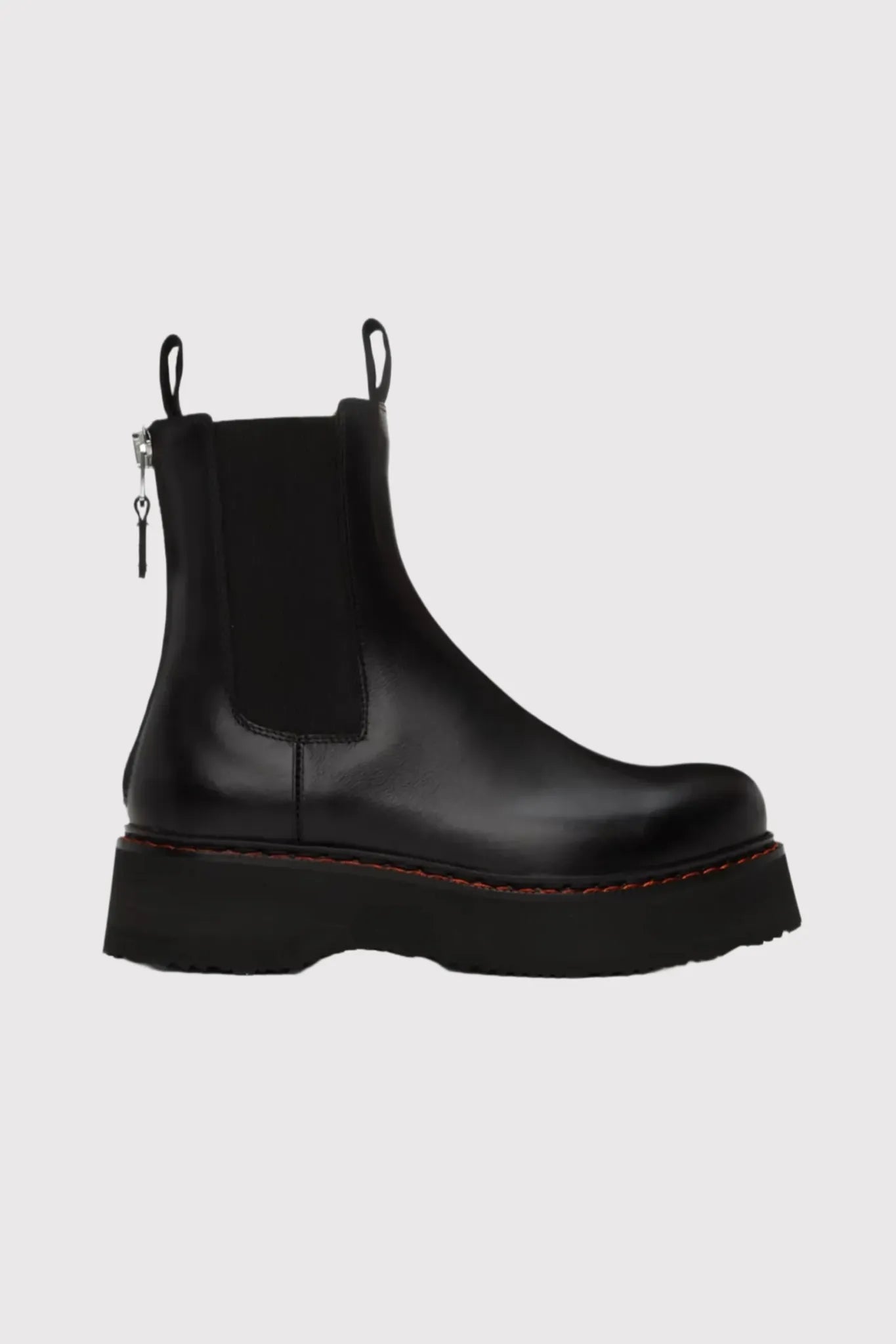 Chelsea Boot aus schwarzem Kalbsleder mit dicker Profilsohle aus Moreflex. Klassisches Design mit Zuglaschen und Stretch-Einsätzen.