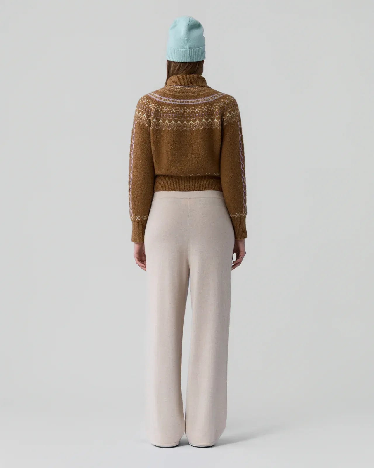 Woll-Kaschmir-Cardigan mit feinem Fair-Isle-Muster und Kragen. Warme Brauntöne mit hellen Kontrasten, weich im Griff.
