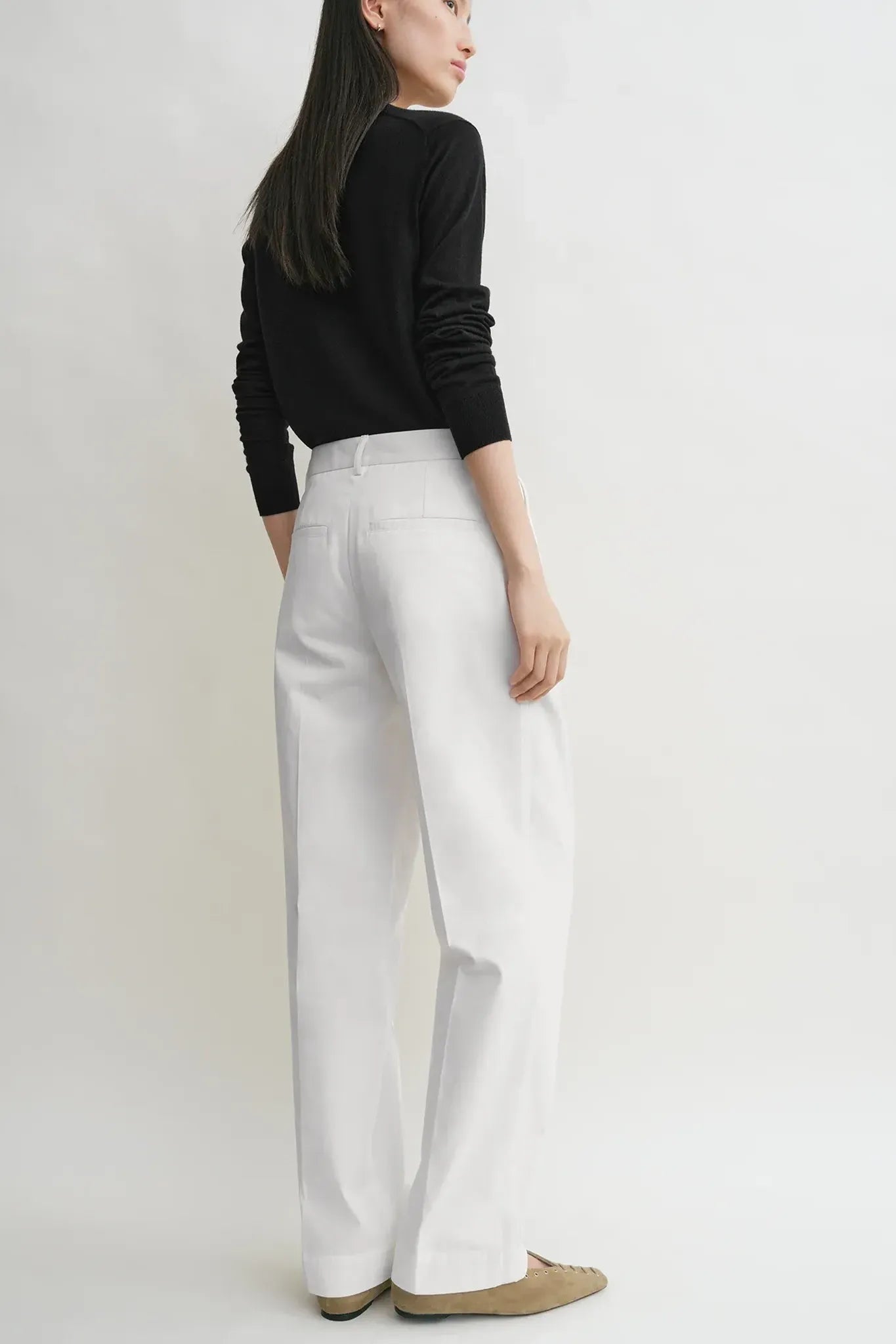 Die Hose Slanted Pocket kombiniert präzise Schneiderkunst mit einem modernen, geraden Bein. Gefertigt aus fester Baumwolle, bietet sie eine hohe Taille, schräge Fronttaschen und rückseitige Leistentaschen. Gürtelschlaufen und ein Reißverschluss vervollständigen das minimalistische Design.